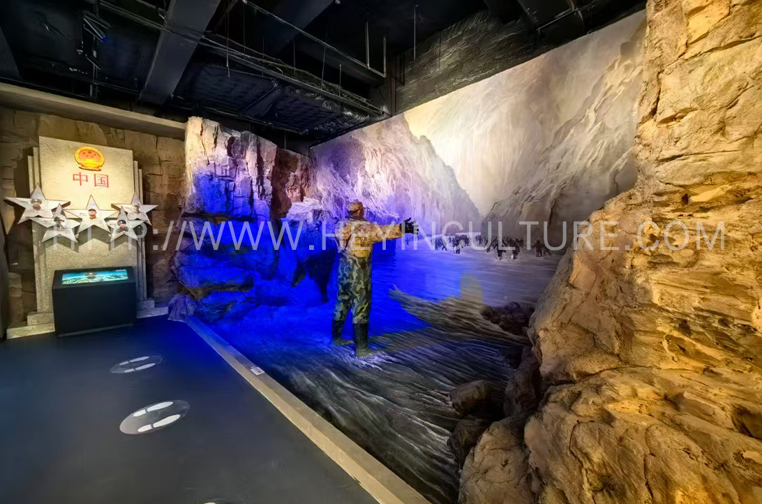 在該項(xiàng)目中,我司深度參與了場(chǎng)景設(shè)計(jì)與實(shí)施全流程,通過打造沉浸式展廳空間,實(shí)現(xiàn)了歷史場(chǎng)景活化與國防教育的有機(jī)融合,構(gòu)建出多維立體的國防教育體驗(yàn)空間。